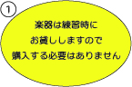 2点お願いです。譜面台と楽器に付けるマウスピースにつきましては、購入をお願いします。