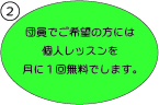 お子様もいると思います。そんなお子様には、月に1回無料で個人レッスンをさせていただきます。