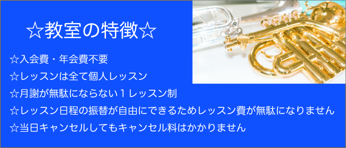 私の金管楽器教室は、個人でやっていますので、1レッスン制と月謝制がお選びいただけます。